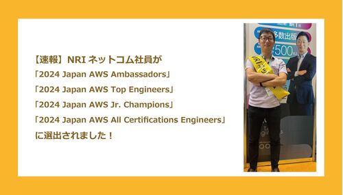 こんにちは、ブログ運営担当の栗田です。 本日6/20に発表されました「2024 Japan AWS Ambassadors」「2024 Japan AWS Top Engineers」「2024 Japan AWS Jr. Champions」「2024 Japan AWS All Certifications Engineers」に、NRIネットコム社員が選出・表彰さ…