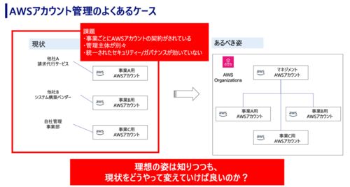 こんにちは、佐々木です。 直前のブログ告知で恐縮なのですが、明日(2024/12/18)の12時にWebinarで登壇します。 テーマはマルチアカウント管理の始め方ということで、AWS Organizationsを導入したいけど様々な制約で困っている人向けです。 解決したい問題…