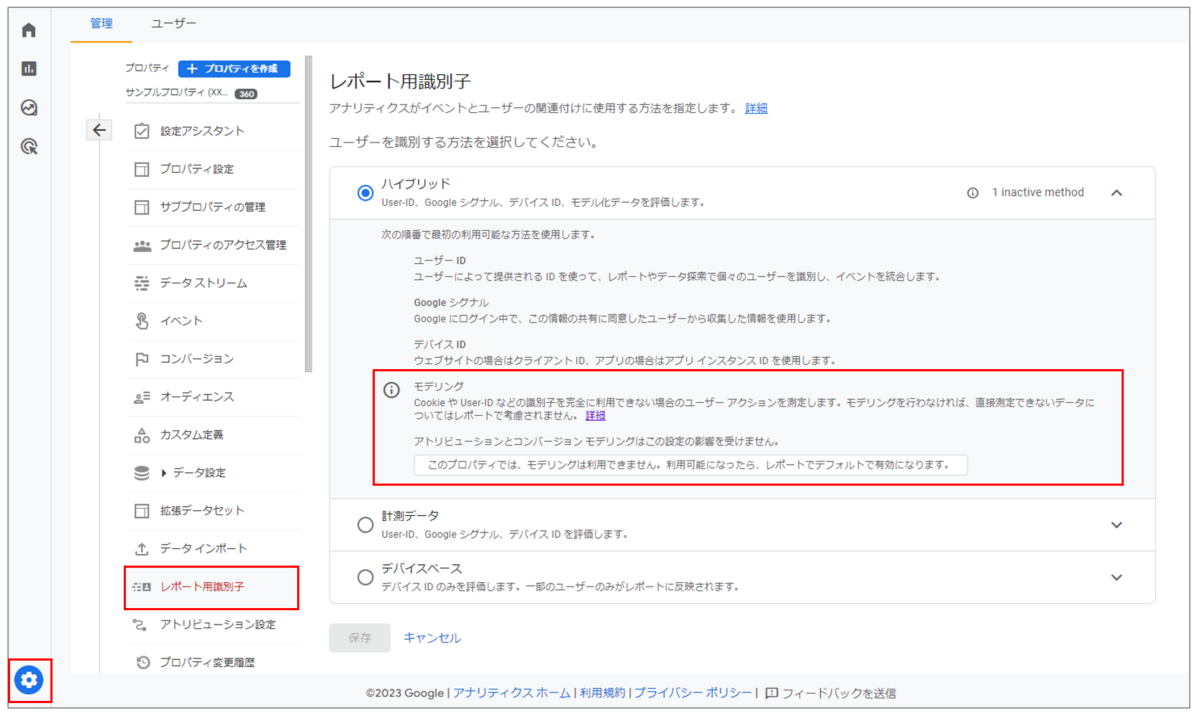非同意データはモデリング機能の推定値に利用されると記載しましたが、行動モデリングは全てのレポートで利用できる機能ではありません。
