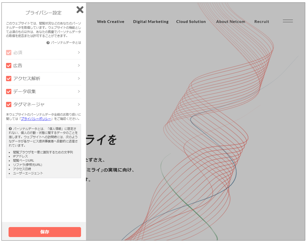 弊社NRIネットコムのコーポレートサイトでもプライバシー設定を導入しています。
