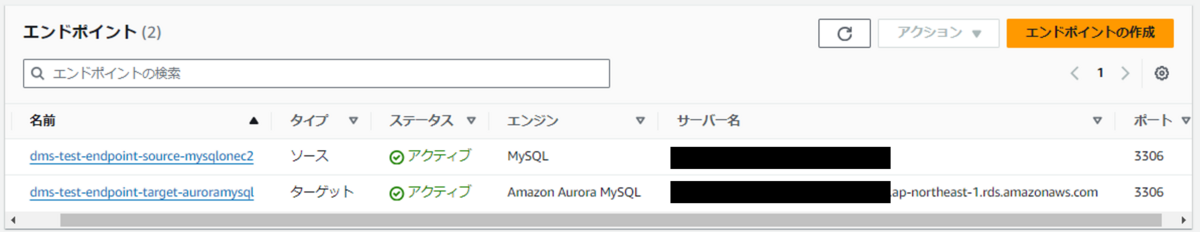 | エンドポイントタイプ | ソースエンドポイント | ターゲットエンドポイント |