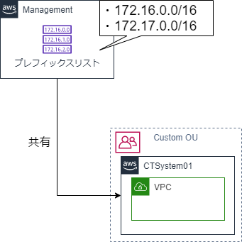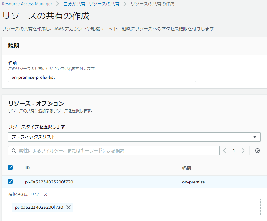 プレフィックスリストも共有可能なリソースに含まれており、以下のような対応が可能になります。